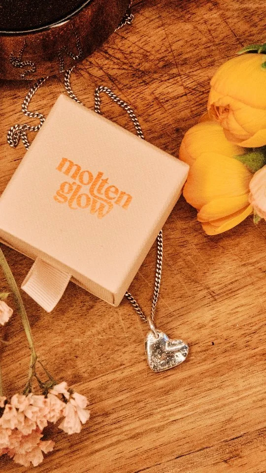 At the heart of Molten Glow is the sand casting process, a technique that adds an organic, artisanal quality to each creation. Sand casting is not only a nod to ancient craftsmanship, but also a way to imbue every piece with character and one-of-a-kind texture. The process captures the raw, natural forms of metal as it flows into intricate moulds, resulting in jewellery that is as unique and individual as the materials themselves. This method ensures that no two pieces are ever the same - each one is a true work of art, shaped by the unpredictable beauty of molten metal and the artist's skilled touch.