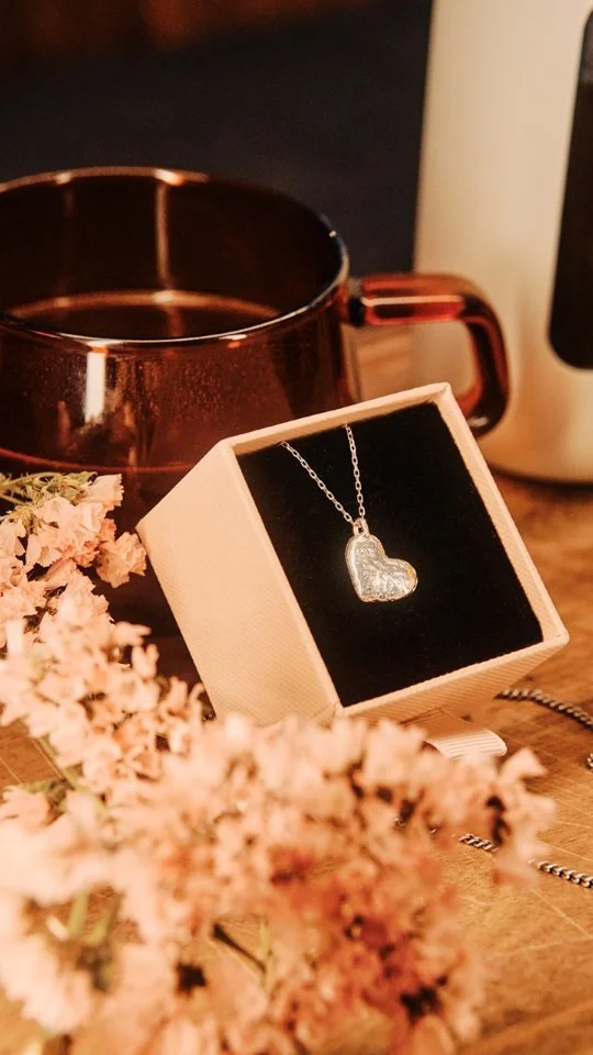 Each piece of jewellery is made using the traditional sand casting technique. First, the design is hand-carved in wax, then pushed into fine sand to create a negative mould. Molten metal is poured into the negative mould, capturing every unique detail. This process results in a one-of-a-kind piece with natural textures and variations. The result is a beautifully crafted, handmade design with a natural, subtle raw finish that’s full of character.